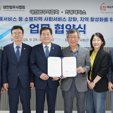희망제작소(이사장 윤석인)와 대한법무사협회(협회장 이강천)가 지난 9월 29일 소멸위기에 처한 지역사회를 위한 협력을 강화하는 업무협약(MoU)을 체결했습니다. |